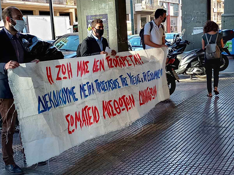 Καλούμε τους εργαζόμενους να μην υποκύψουν σ’αυτόν τον εκβιασμό.Να έρθουν σε επαφή με τα σωματεία τους,να οργανωθούν. ’Ολοι μαζί να διεκδηκήσουμε ουσιαστικά μέτρα προστασίας της υγείας μας με ευθύνη κράτους και εργοδοσίας.